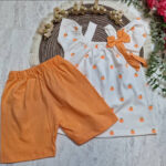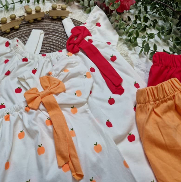🌸رنگ بندی:زمینه سفید با شلوارک وسیب سرخابی/زمینه سفید با شلوارک وسیب نارنجی